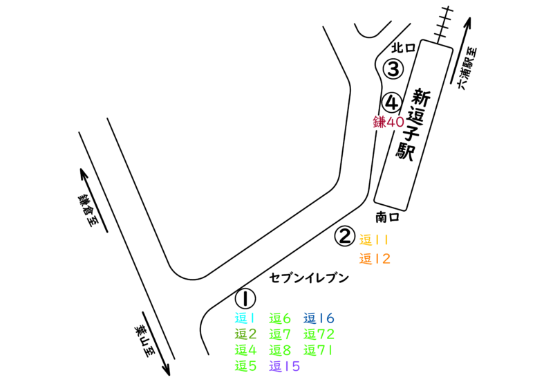 - 逗子駅(JR):1番・2番・3番・7番のりば