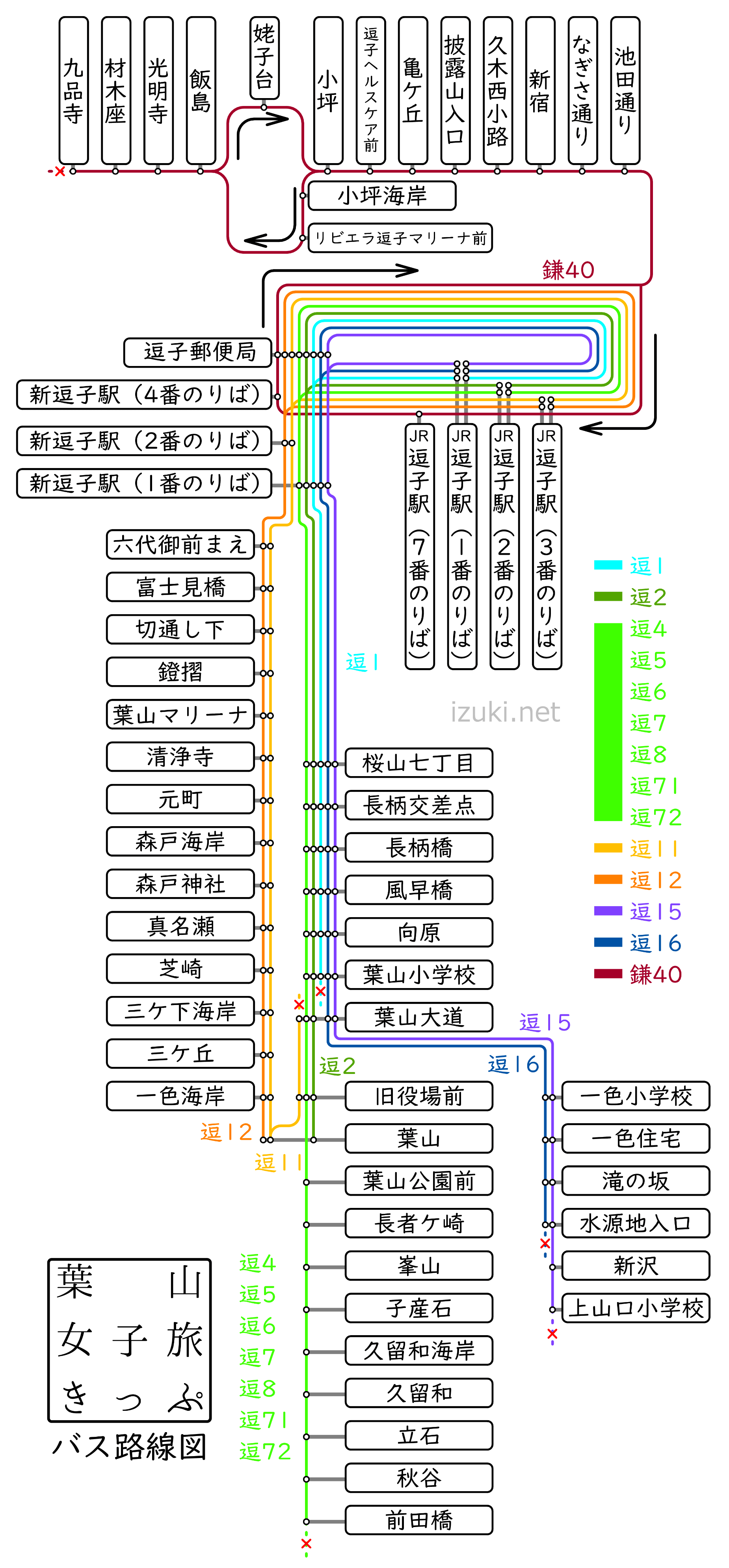 - 逗11系統…乗車可能は「葉山大道」バス停留所まで。